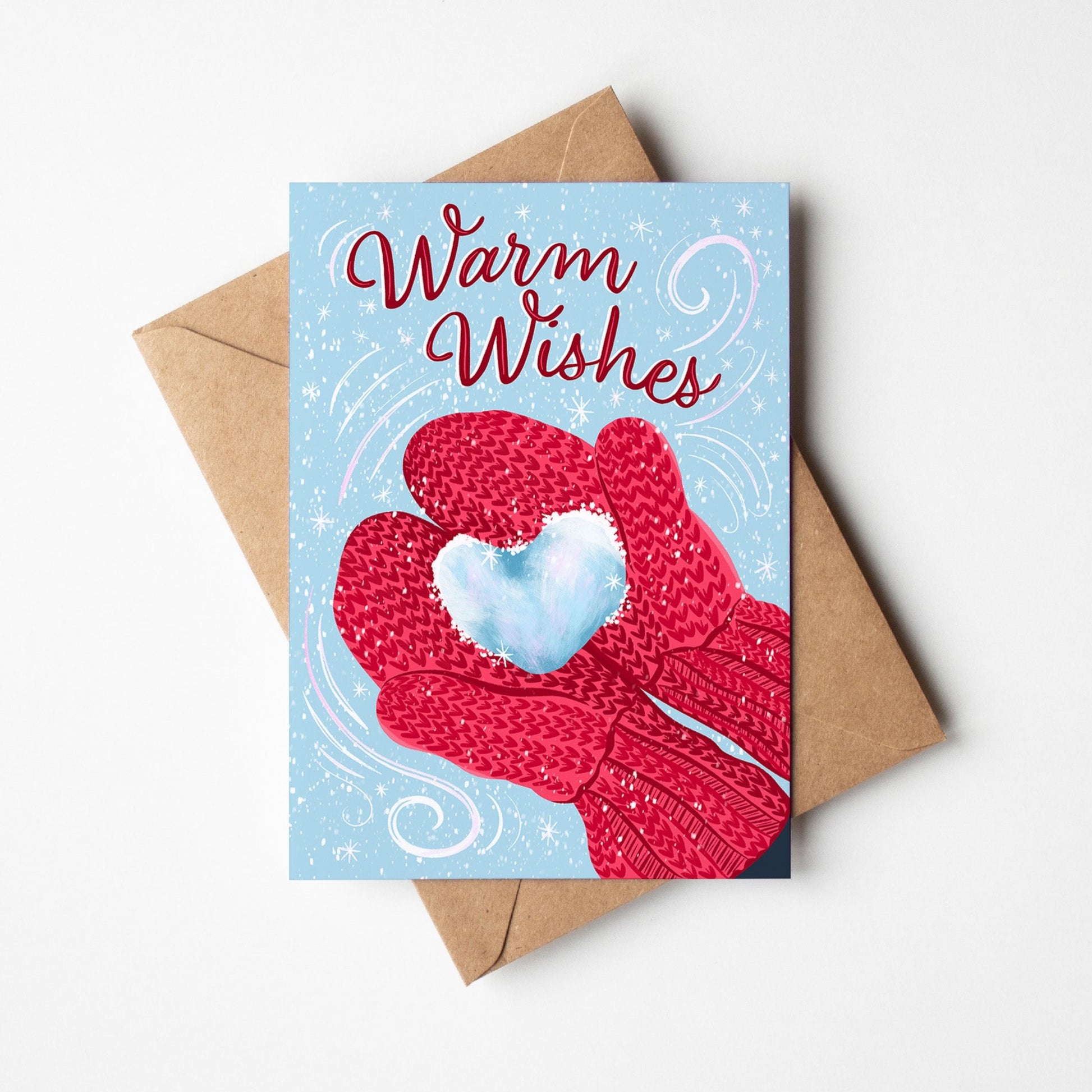 This delightful holiday card is sure to bring a little flurry of joy! With charming winter gloves wrapped around a snow heart, it's a magical way to show your warmest wishes this season.