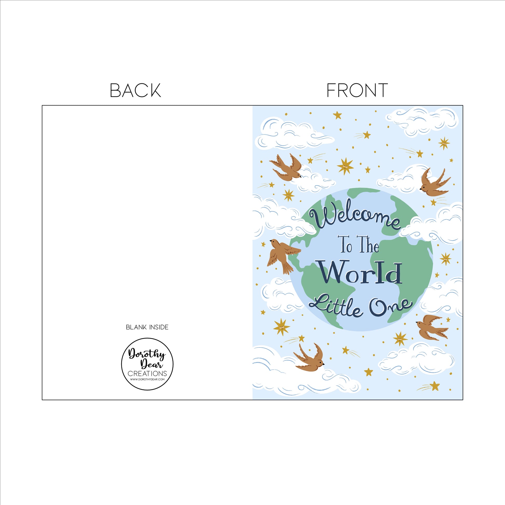 Spread warm and tender wishes with our Welcome Little One Greeting Card. Hand-illustrated with a whimsical world and gold birds, this card welcomes the new arrival with love. Perfect for baby showers and new parents. Say hello to the newest addition (and congratulate the parents) with our charming card.